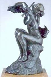 Figura 6: Idade Madura (1893 – Museu Rodin) São encontrados em suas obras também, movimentos de suspensão e leveza, como, por exemplo, em “A Tocadora de Flauta” (figura 7) na qual os drapeados do tecido e a posição inclinada, porém suspensa da mulher, instigam a sensação de movimentos internos de projeção do corpo para cima e levemente para o lado, como também o movimento externo do ar, que movimenta o tecido.