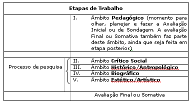 3) Avaliação Final. O quadro a seguir representa a seqüência das etapas de trabalho: